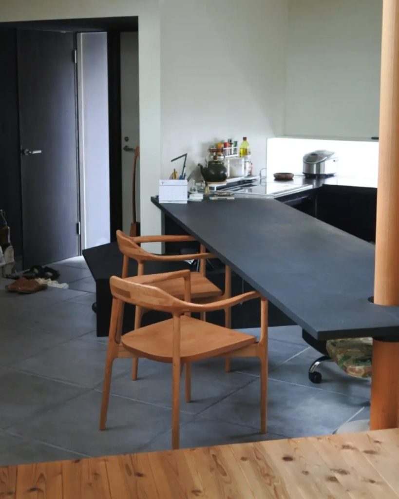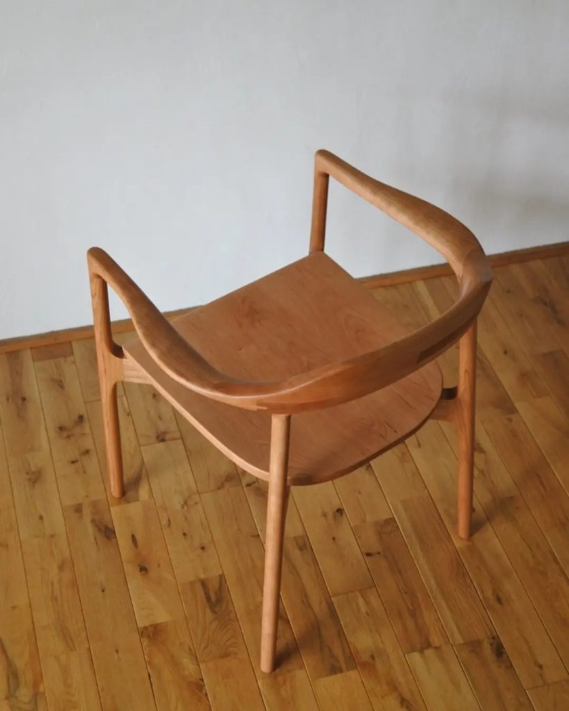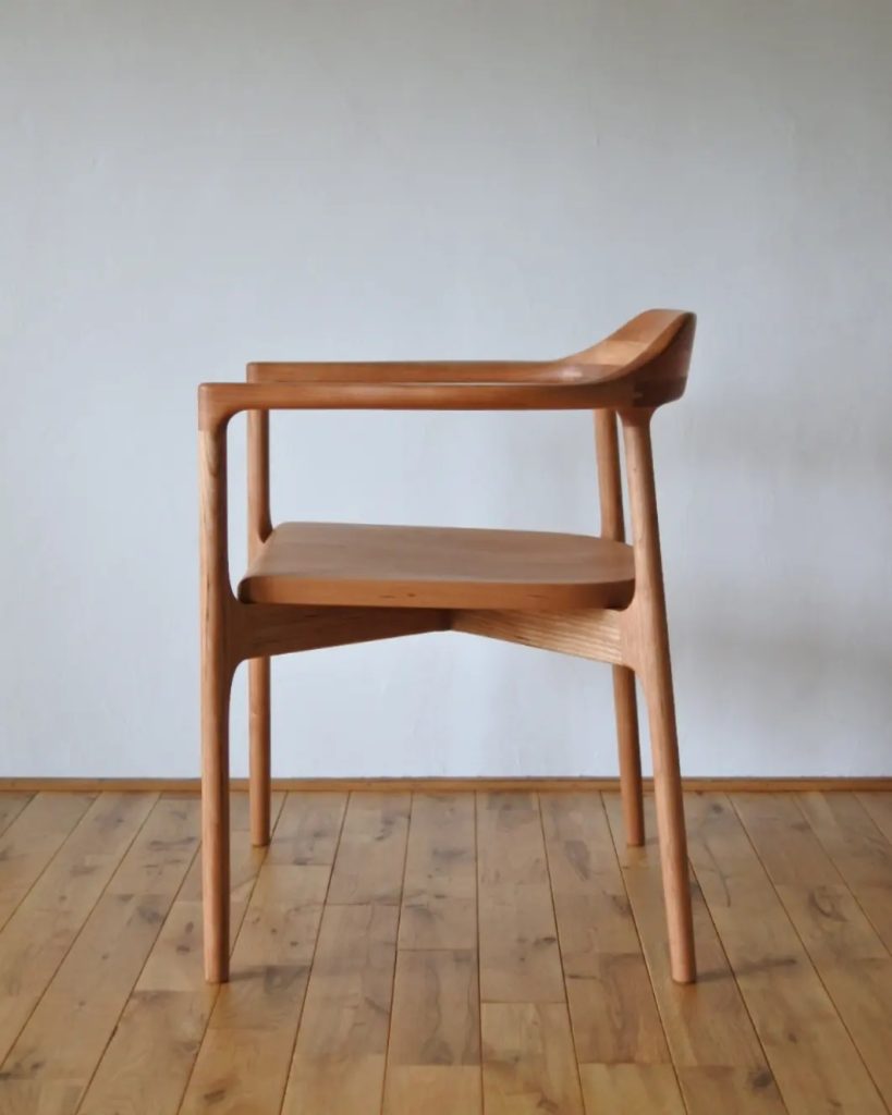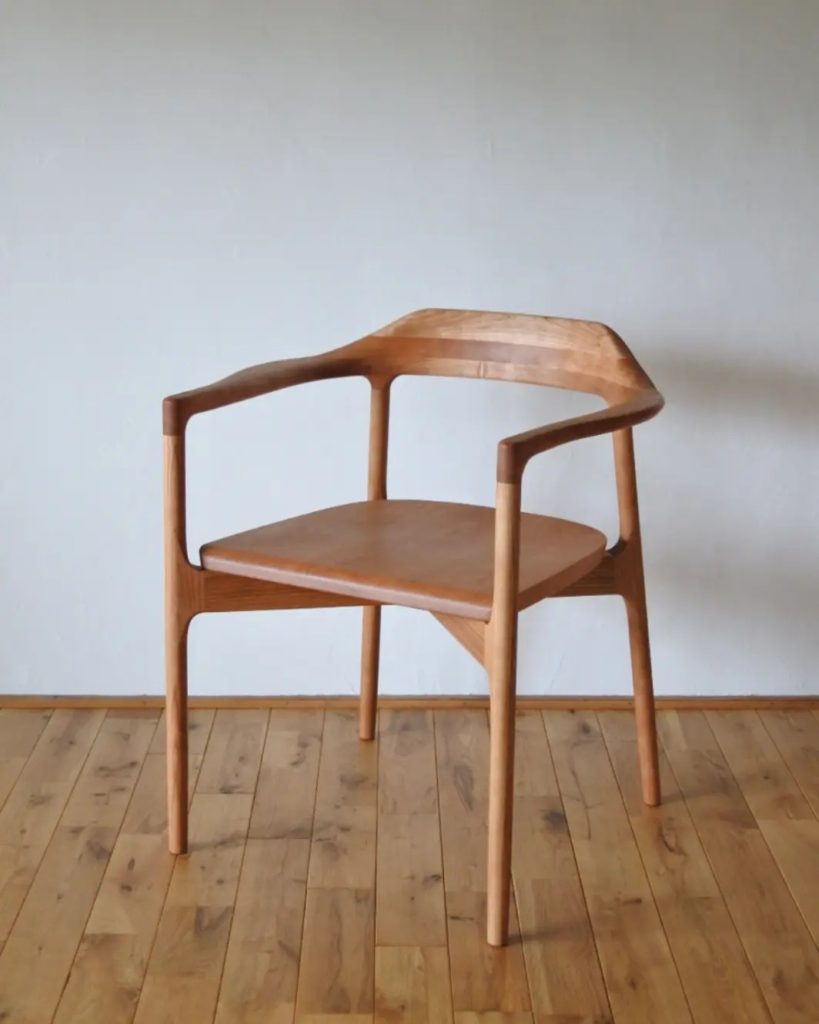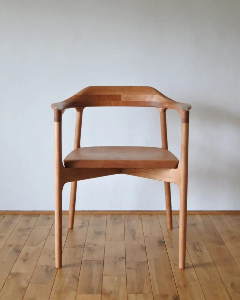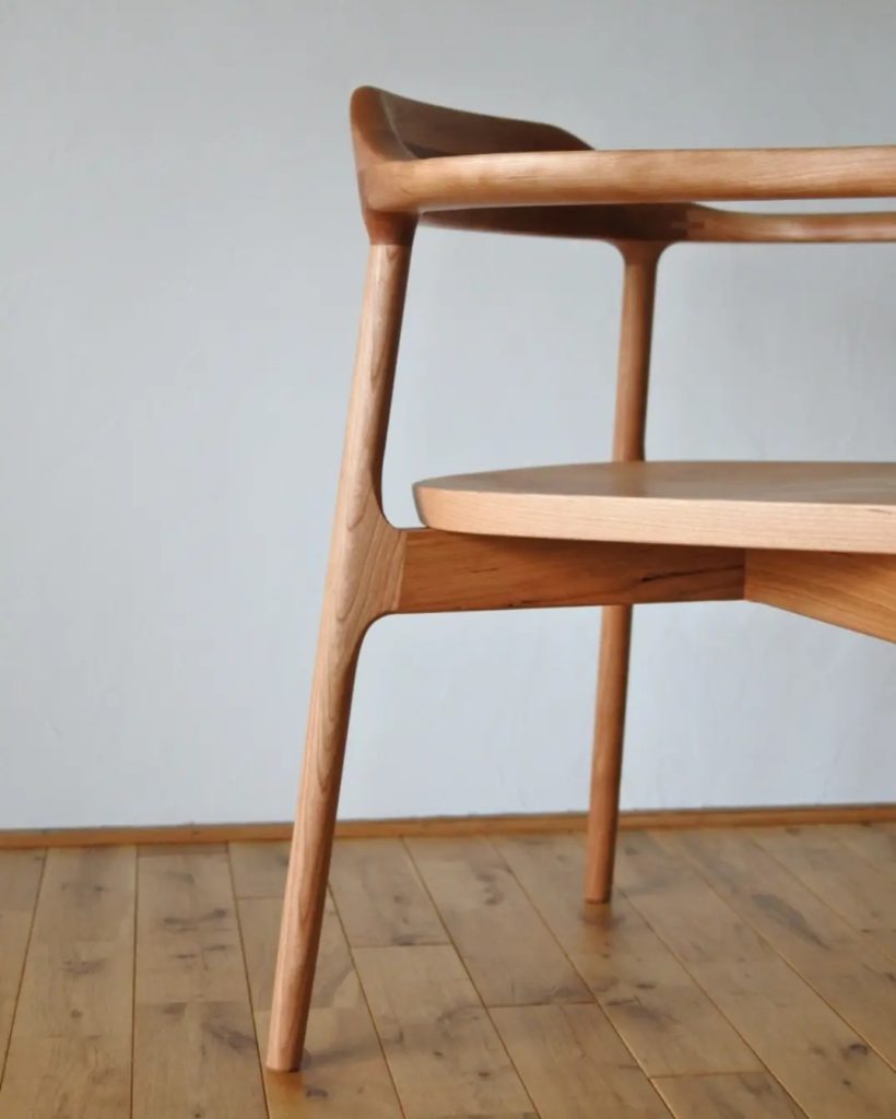 座面の当たりも柔らかくなるように掘りこんでいるので板座のわりにソフトな感じに仕上がっています。少し足をなげだしゆったりと座ってもらいたい、そんな一脚になりました。